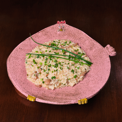 Risoto de Funghi Porcini, mix de Cogumelos Frescos, um toque de Tomate Seco Assado e Parmesão, finalizado com Polvo cozido mantendo a suculência e textura. R$152